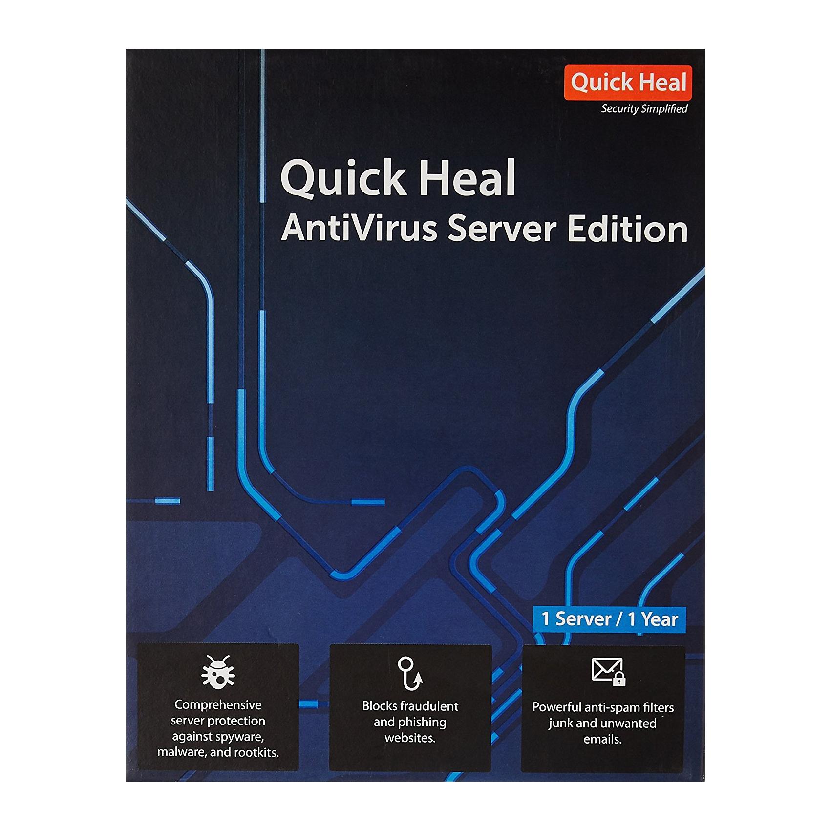 Quick Heal Antivirus Server Latest Version - 1 Server, 3 ... Quick Heal Antivirus for Server Provides complete protection to your important data against critical ransomware attacks. It detects and blocks unknown ransomware attacks in real time backed up by Behaviour Detection Technology.Scans Wi-Fi router that your computer connects to and helps you know if the router is susceptible to vulnerabilities like DNS hijacking, weak password, or weak Wi-Fi ...
