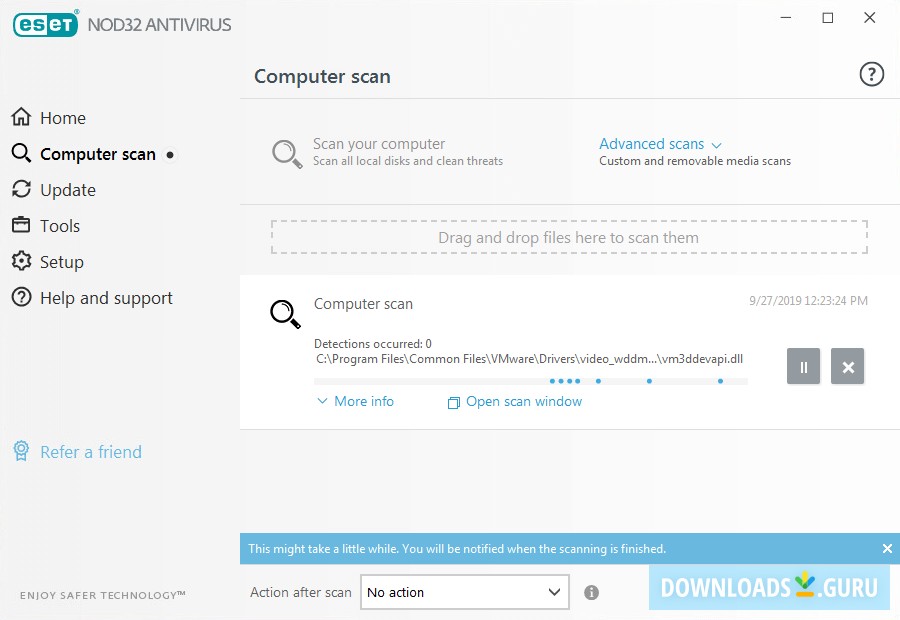 Download Eset NOD32 6.0.306.0 for Windows - OldVersion.com - ESET NOD32 Antivirus will display a warning notification with several options when a web browser attempts to access websites or domains catalogued in the ESET malware database. * Regular full scan - For increased security, ESET NOD32 Antivirus version 6 can regularly perform a full scan of your computer during idle time.